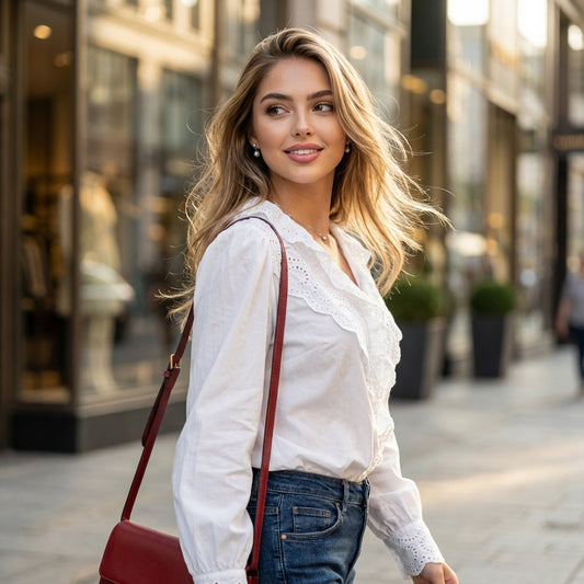 Alvessa Ruffled Cotton Embroidered Blouse