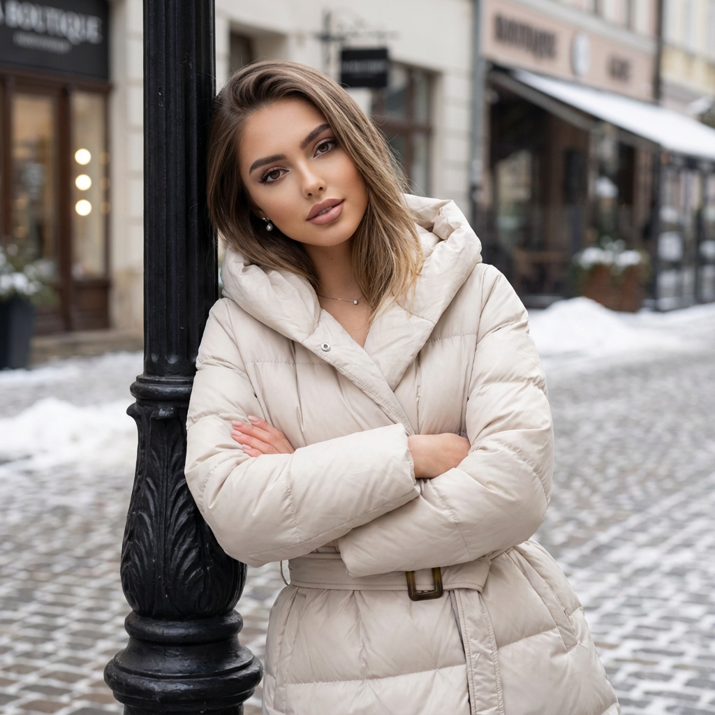 This women’s hooded down jacket is designed for everyday comfort during autumn and winter. Made with durable memory fabric and filled with 90% white duck down, it provides reliable warmth while remaining lightweight and easy to wear.