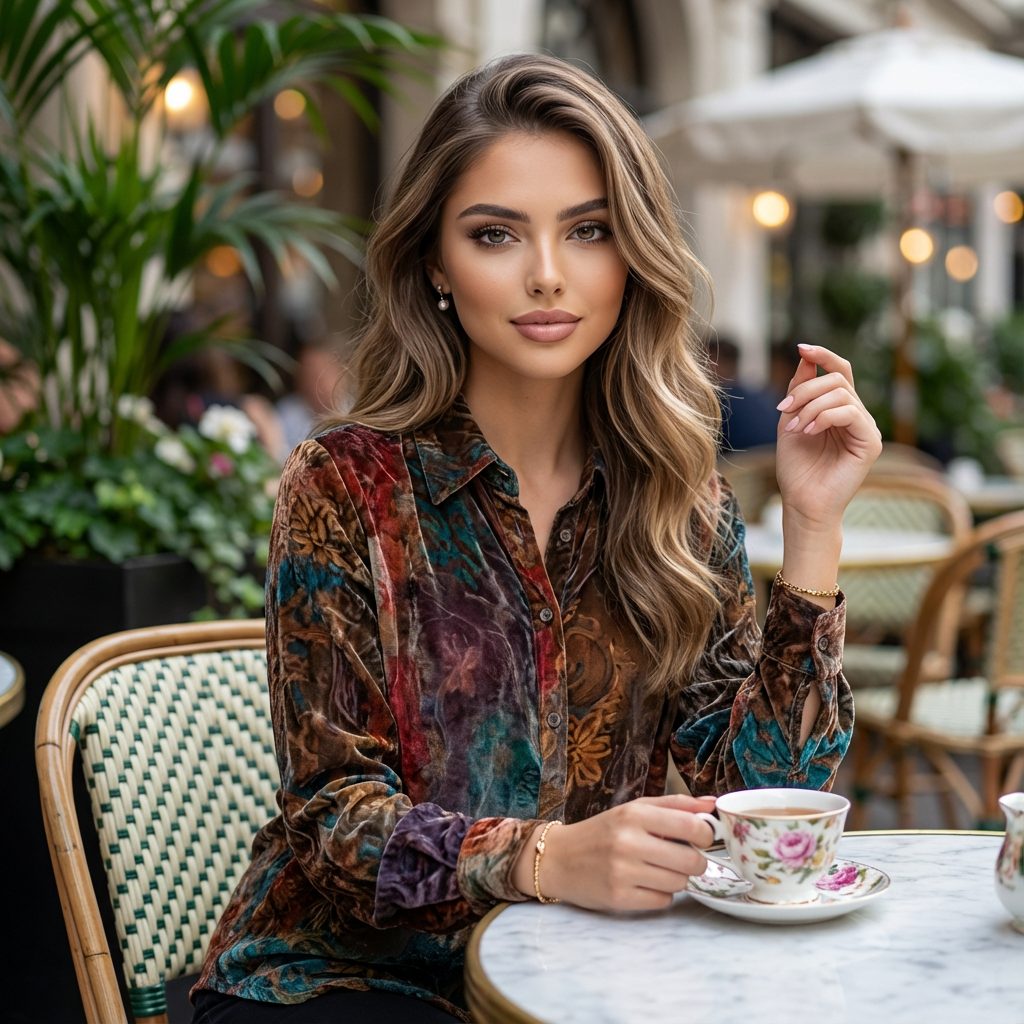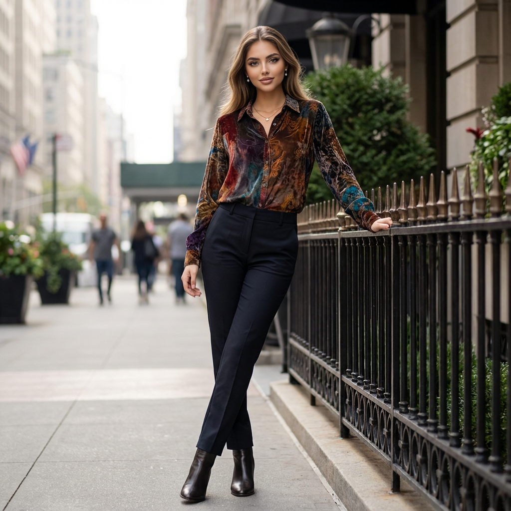 A polished button-up shirt designed for modern workdays. Featuring a classic turn-down collar, subtle print detailing, and a relaxed loose fit for all-day comfort.
