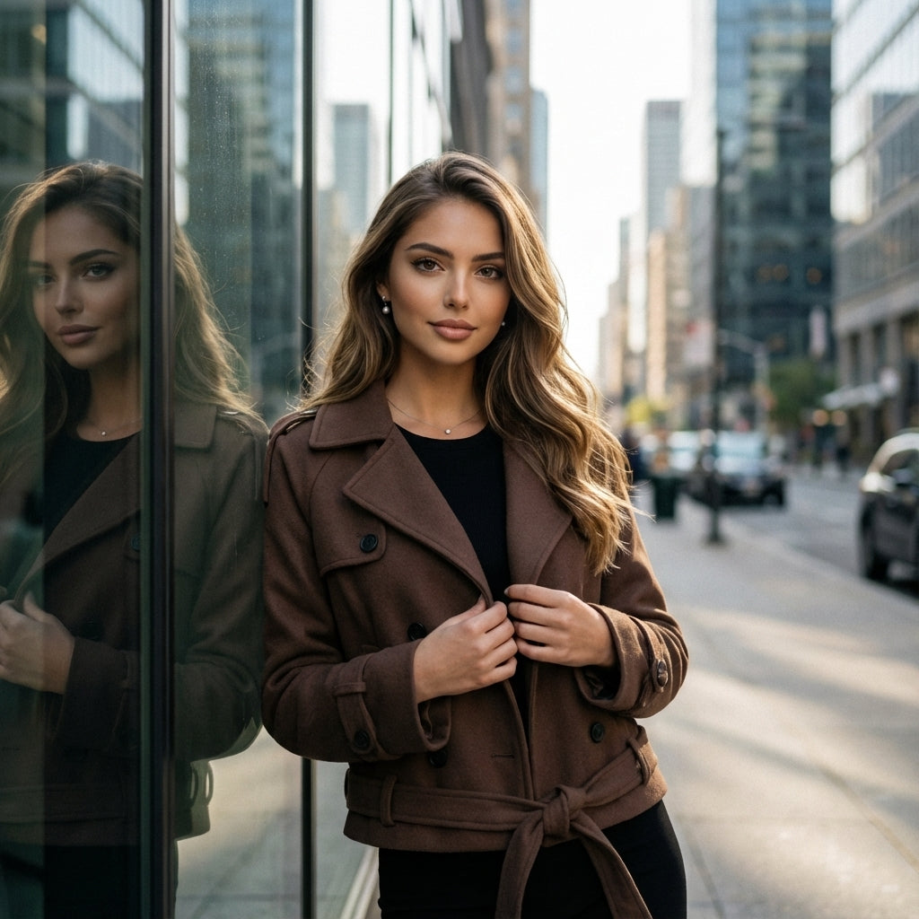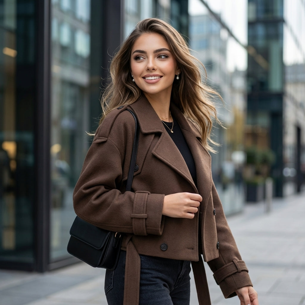 A timeless vintage-inspired women’s jacket designed for effortless everyday wear. Featuring a classic double-breasted front, turn-down collar, and full-length sleeves, this piece delivers a relaxed yet polished silhouette.